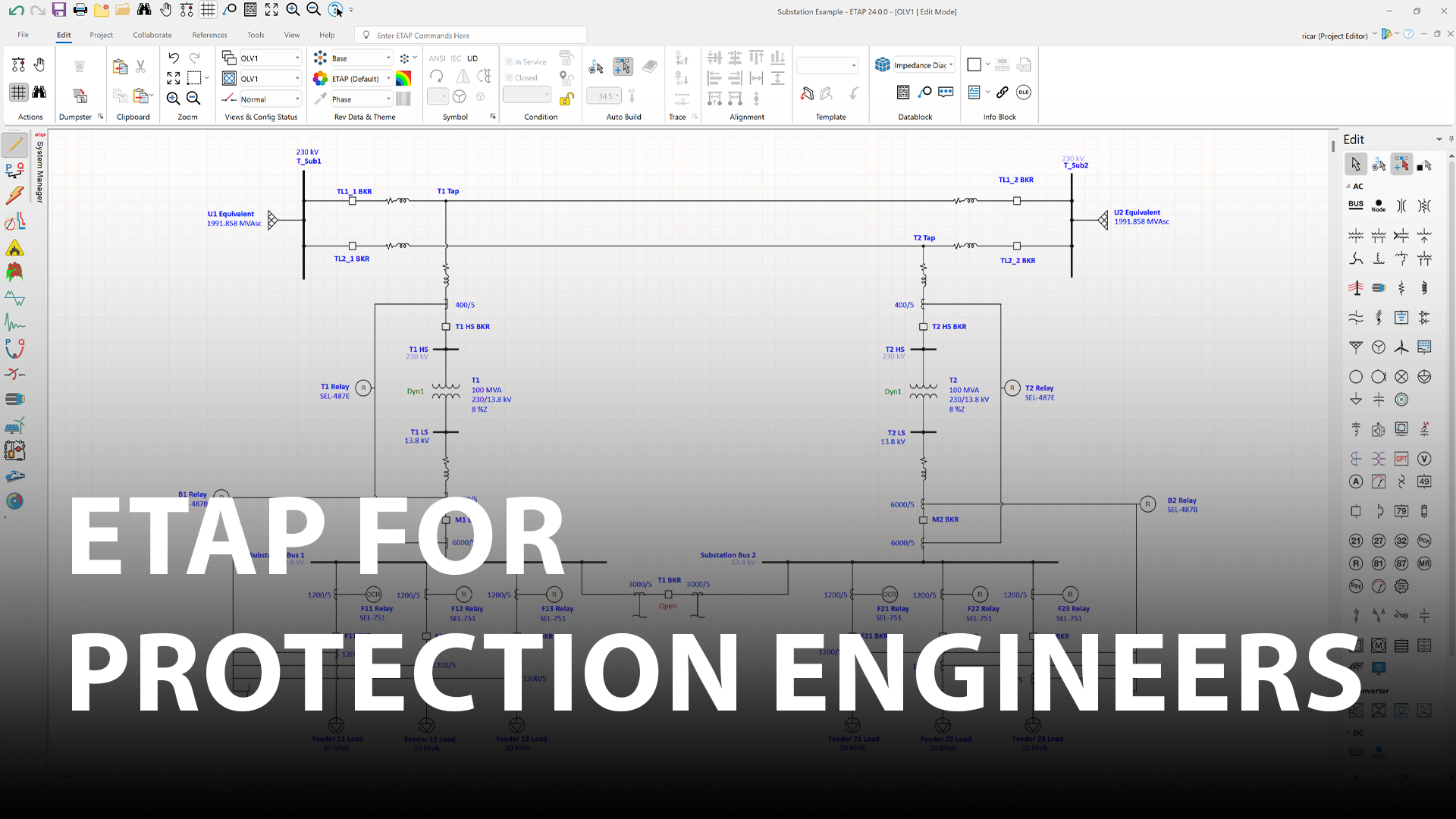 Learn how ETAP is used to model and analyze power systems for protection studies. Covers building system models, running load flow and fault studies, and performing relay settings and coordination analysis in ETAP.